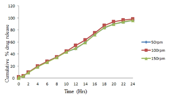 Figure 3. Cumulative % Drug release profile of optimized formulation on agitational intensity